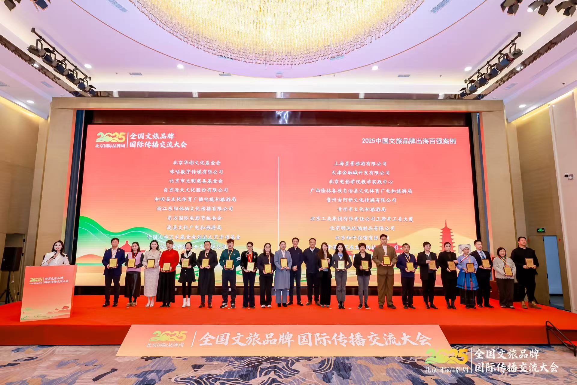 北京华彬文化基金会申报的《丝路新篇:“仁寿殿”出海记》成功入选 “2025文旅品牌出海百强案例” ,基金会代表受邀出席大会并上台领取荣誉牌匾。这个牌匾,不仅代表着来自官方和行业的高度认可,更激励着基金会在未来继续深耕国际文化交流领域,探索多元化的文化出海模式。